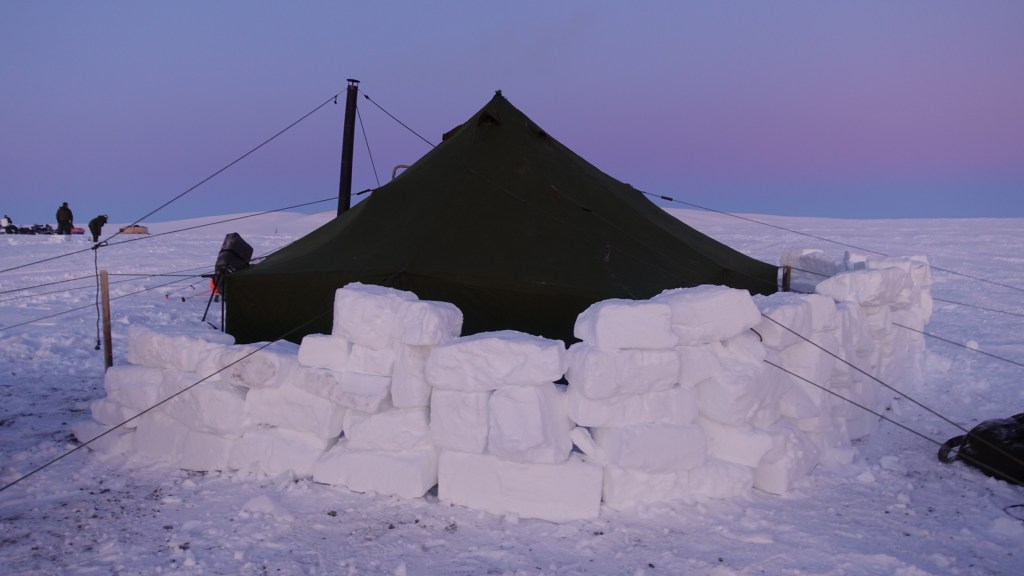 Currently the standard winter tent for our mountain soldiers is the big, heavy 10 man tent. It weighs 56 lbs. The stove that it is typically coupled with is the Arctic Space Heater which weighs another 50 lbs. They get packed into a sled that weighs close to 40 lbs by itself. Along with fuel and water the sleds can weigh over 200 pounds. For flat arctic conditions, this system is adequate. In the mountains, this system kills our mobility.
